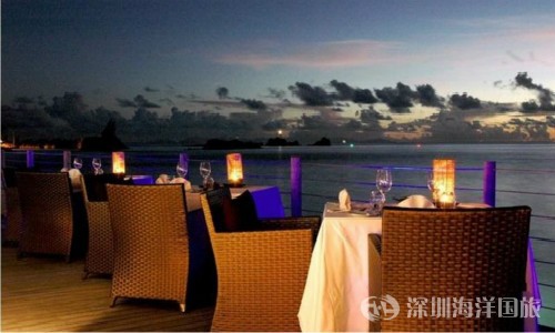 餐厅供应各种受欢迎的国际菜肴和当地的克里奥尔特色的美食。兼收并蓄的现场烹饪风格和自助的饮食令人向往。坐在餐厅外面的甲板的露天茶座上可以俯瞰印度洋清澈的海水。印度洋落日的壮丽景色会激起你的食欲,给您一个令人难忘的晚餐。