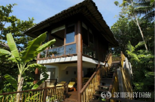 度假村为纯 Villa 式的酒店,周围为郁郁葱葱的热带植物包围,保证每栋 Villa 都能拥有绝佳的私密性。所有的 Villa 都为上下两层设计,浴室均为开放式,采光和观景角度极好。大部分 Villa 都有自己独立的泳池,泳池的设计使人感觉此泳池似乎与整个大海连在一起。同时,泳池边殷勤的服务生也让您的度假生活更加惬意和自如。